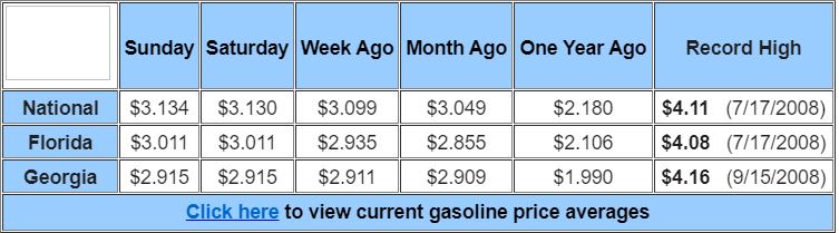 Aaa Florida Gas Prices Average Above 3 Per Gallon